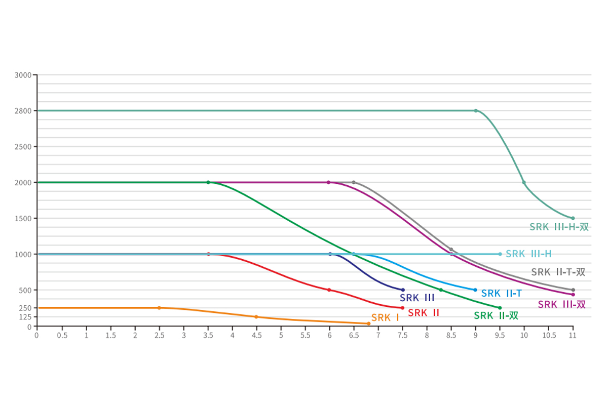 | SRK II | Stal miękka o wysokiej wytrzymałości | 17kg/m | 20,08 cm² | 651 cm⁴ | ≤2000kg | Poniższy wykres | 6 m | RAL2002 |