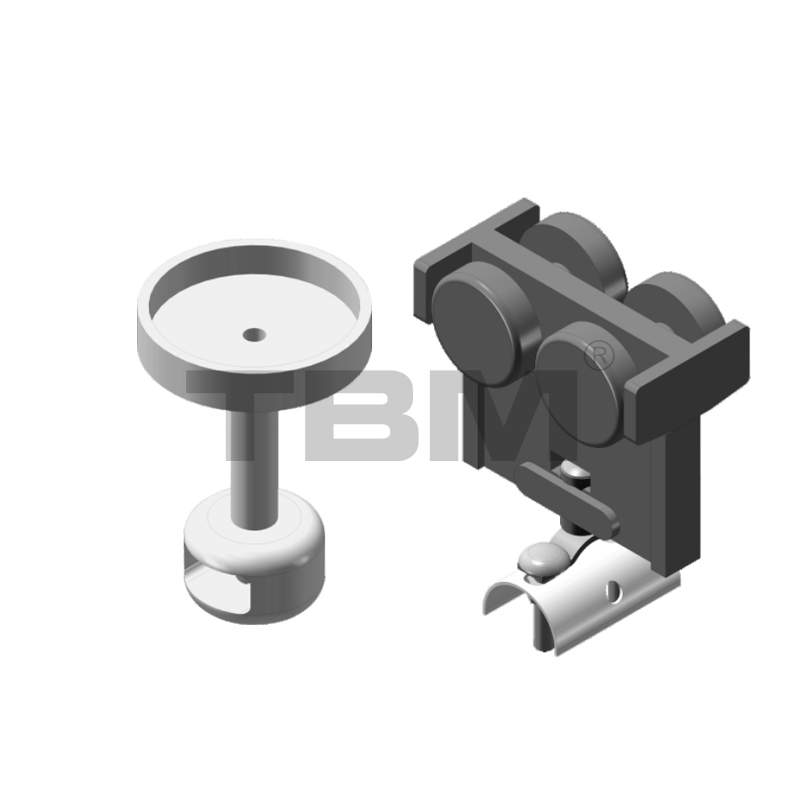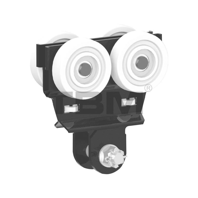 [Koła wózka wykonane są z nylonu o wysokiej wytrzymałości, o określonym kącie kół, idealnie dopasowanym do bieżnika toru. Wózek automatycznie centruje się podczas pracy. Wózek wyposażony jest w konstrukcję kół prowadzących, która zapobiega tarciu o otwory torowe i zwiększa opory jazdy. Dwa poziomo ustawione skrzydełka sprawiają, że w przypadku awarii wózek nie spadnie z toru, zapewniając w pełni bezpieczeństwo.]