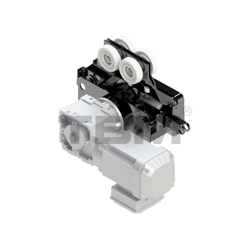 ■ Jednostka napędowa głównej belki lub wciągnika systemu SRK wykorzystuje tarcie pomiędzy gumowanymi kołami a spodem toru do ciągnięcia belki głównej i wciągnika. Nadaje się do zastosowań z dużymi rozpiętościami i dużymi ładunkami, gdzie ręczne podnoszenie jest trudne. Wybór zależy od konkretnych potrzeb klienta.