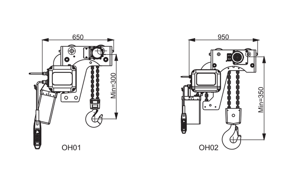 | Uwaga: typ ZH01/02 jest odpowiedni dla belek dwuteowych 125-178, a wózek elektryczny porusza się z prędkością 20 m/min. Można go również używać z KBK. | ||||||